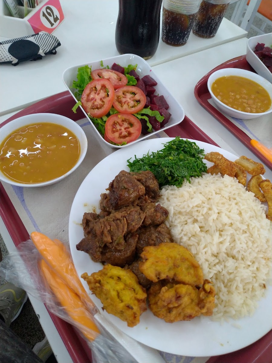 The star of the show at Nosso Cantinho is undoubtedly the Almoço no Kilo, a feast where guests can indulge in a self-service buffet that boasts a rich assortment of salads, pastas, and succulent meats. Each bite is a journey through tastes that evoke the comfort of home-cooked meals, with flavors that are expertly balanced and lovingly prepared. Don't miss the chance to savor their legendary Feijoada, served on Wednesdays and Saturdays. This hearty dish is a true representation of Brazilian tradition, served with fluffy white rice, garlicky sautéed collard greens, crispy pork crackling, and a bacon-studded farofa - a symphony of flavors that will leave you yearning for more.